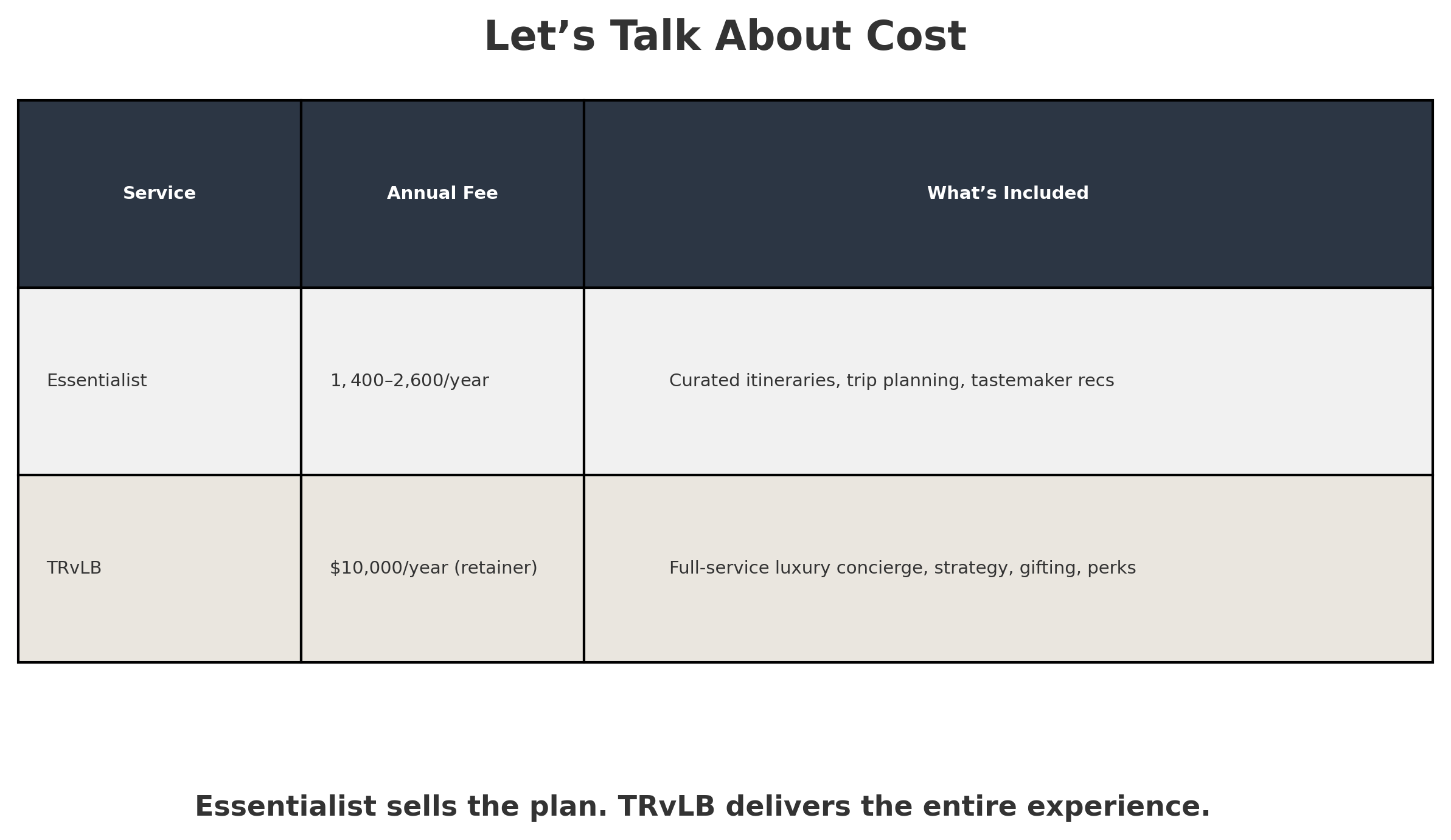 I created TRvLB specifically for high-performing, time-starved, experience-obsessed travelers who want to trust that someone truly has their back. So let’s break it down.